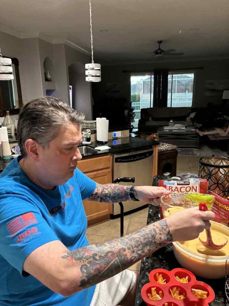 My dizziness isn’t as bad as it’s been the last couple of days. I did miss a steroid this weekend. I don’t think that had to do with the increased vertigo. I think the radiation is just catching up to me, and this weekend was a bit trying. Today has been easier. I had my zapping and came home. I saw my “friends” at the place, did some light work for my job, had lunch, and a juicy Georgia peach. I had a couple of mini donuts and watched a movie. It rained most of the morning, and now it’s sunny. Chip came to hang with me. He’s asleep at the moment. Normal for him at this time. I’m going to make a frozen lasagna tonight from Costco. It’s pretty good. Last night I didn’t really feel like cooking, so I made a strawberry salad like last week: spring mix, strawberries, cucumbers, tomatoes, chicken, sunflower seeds, and some raspberry vinaigrette. I prepped my egg bites yesterday afternoon. That was easy and quick. I can’t wait to try them.